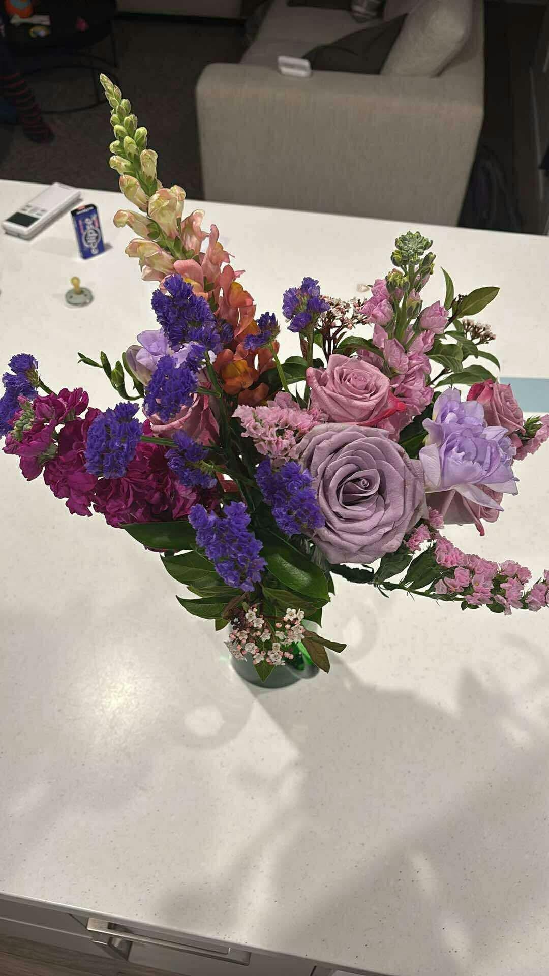 Whether it’s a birthday, anniversary, or simply to brighten someone’s day, the “Pink & Purple Bouquet” is designed to leave a lasting impression. Its delightful combination of hues symbolizes love, admiration, and creativity, making it an ideal gift for loved ones or as a vibrant addition to your home.